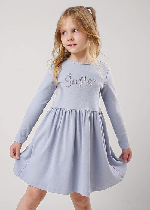 Милое платье из трикотажа в рубчик идеально подойдёт для создания классного образа и отличного настроения! Модель с длинным рукавом и пышной юбкой дополнена вышивкой с пайетками. Комфортная посадка по фигуре, актуальный цвет и качественные материалы.