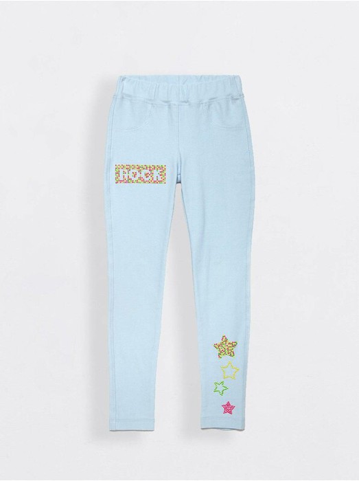 Джеггинсы из эластичного хлопкового денима обязательно понравятся маленькой моднице: спереди расположен яркий рисунок из неоновых металлических страз. Преимущества модели:- широкий притачной пояс;- высокое содержание хлопка;- функциональные карманы сзади.