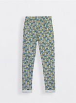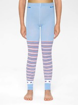 Леггинсы для девочки облегающие из набивного трикотажного полотна длинные с боковыми швами. По спинке - накладные карманы. По переду изделия- имитация гульфика и боковых карманов. Верхний срез изделия обработан широкой эластичной тесьмой швом в подгибку. По низу изделия-цельнокроеные манжеты (отвороты).