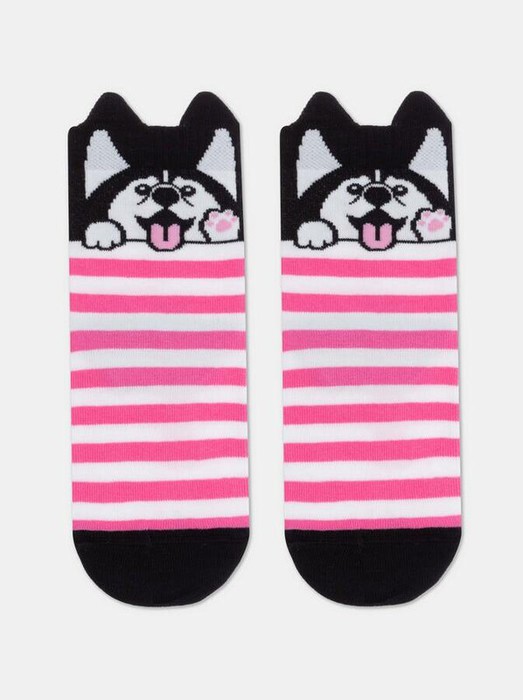 Короткие носки из хлопка с рисунками-мордашками и декоративными элементами на резинке в виде ушек. LYCRA®: носки, в составе которых есть волокно LYCRA®, превосходно растягиваются во всех направлениях, восстанавливают свою первоначальную форму раз за разом, а также обладают повышенной устойчивостью к многочисленным носкам и стиркам.