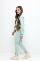 Брюки для девочки из мягкого футера с начёсом. Модель с эластичным поясом на резинке регулируется по ширине с помощью шнурка. Низ на манжетах. Два кармана по бокам. Все трикотажные полотна производятся в соответствии с нормами швейцарского сертификата ЭкоТекс.
