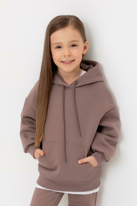 Худи с капюшоном для девочки из футера трехнитки с начесом.  Манжеты и пояс выполнены из эластичного полотна. Спереди удобный карман-кенгуру.