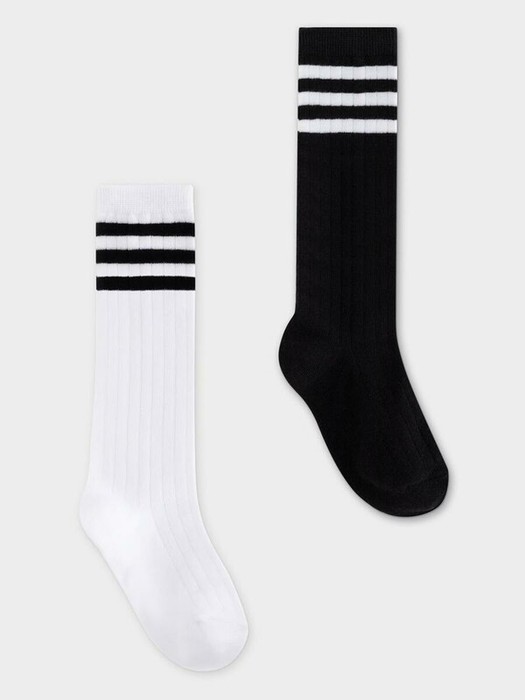 Гольфы для девочки с эластичной резинкой по верхнему краю. Украшены рисунком в полоску. В комплекте 2 пары.