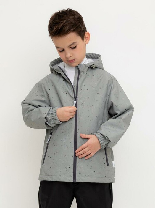 Ветровка для мальчика из мембранной ткани с дополнительной тефлоновой обработкой. Верхняя мембранная ткань 1000/1000 с тефлоновым покрытием отталкивает воду и грязь и обладает «дышащими» свойствами. Подкладка выполнена из сетки, 100% полиэстер. У изделия предусмотрена защита подбородка. Несъемный капюшон утягивается с помощью регулирующего шнура со стопперами. На рукавах эластичные манжеты. Низ изделия регулируется эластичной утяжкой со стопперами. Во всех изделиях верхнего ассортимента для безопасности ребенка предусмотрены светоотражающие элементы.