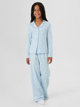 Трикотажная пижама с начёсом из натурального хлопка. Джемпер с длинными спущенными рукавами и брюки с эластичной резинкой в поясе. Мягкие манжеты на рукавах и по низу брюк. Оригинальные набивка и принт выполнены из стойких гипоаллергенных текстильных гипоаллергенных красителей. Изделие сохраняет цвет и форму после многократных стирок. Все трикотажные полотна производятся в соответсвии с нормами швейцарского сертификата ЭкоТекс.