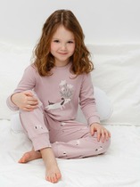 Пижама для девочки из натурального хлопка. Джемпер с длинными втачными рукавами и брюки с эластичной резинкой в поясе. Мягкие манжеты по низу брюк сделаны из материала в рубчик. Оригинальная набивка и принт выполнены из стойких текстильных гипоаллергенных красителей. Изделие сохраняет цвет и форму после многократных стирок. Все трикотажные полотна производятся в соответствии с нормами швейцарского сертификата ЭкоТекс.