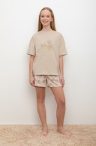 Трикотажная пижама в рубчик из натурального хлопка. Футболка с короткими втачными рукавами и шорты с эластичной резинкой в поясе. Оригинальная набивка выполнена из стойких текстильных гипоаллергенных красителей. Изделие сохраняет цвет и форму после многократных стирок. Все трикотажные полотна производятся в соответствии с нормами швейцарского сертификата ЭкоТекс.