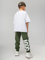 Брюки для девочек, с высокой посадкой, прямого силуэта. Пояс цельнокроеный с эластичной тесьмой внутри 30RV. Боковые швы с разрезами. Внизу, на боковом шве штанины расположено три бантика. Низ в подгибку