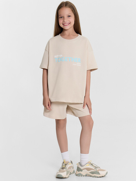 Комплект для девочек состоит из футболки и шорт.