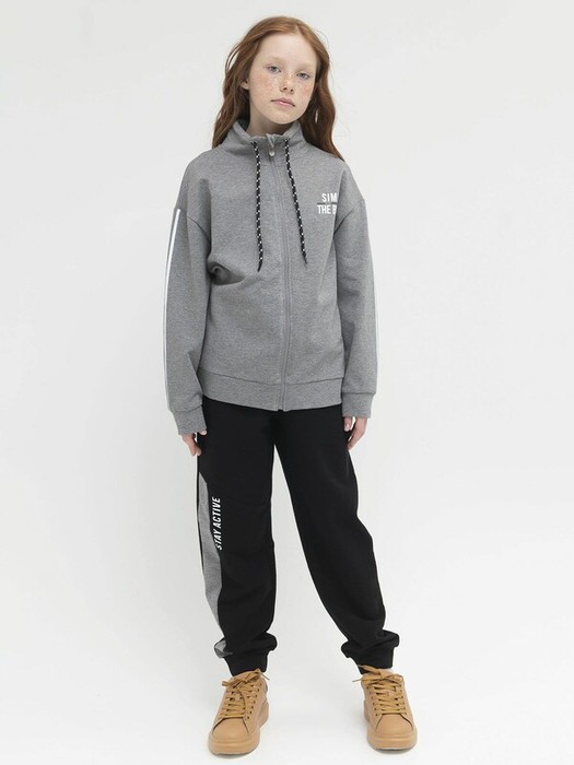 Крепкая пластиковая молния не сломается и не потеряет зубчики даже от частого использования. Фишка костюма: стильные принты на рукаве куртки и на правой стороне брюк.
