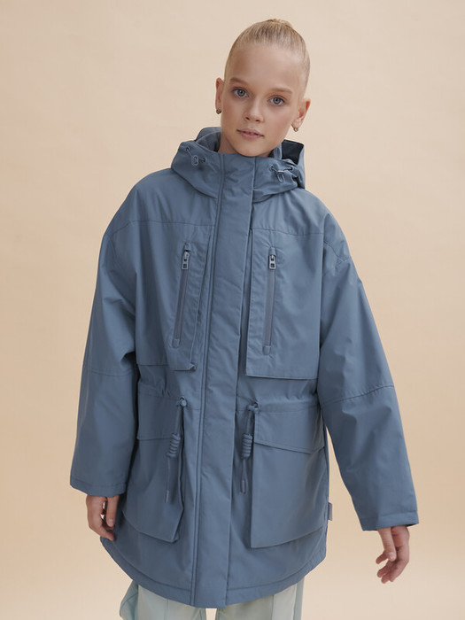 Парка для девочки с температурным режимом не ниже +5°С прямого свободного силуэта. Мягкий оверсайз. Ветровка на флисовом подкладе (верх переда и спинки, подклад капюшона из флиса, а нижняя часть переда и спинки и подкладка рукава из 100% POLY + синтепон 40г/м2 ). Мембранная ткань хорошо защищает нижние слои одежды от намокания. Структура мембранной ткани позволяет коже дышать - ребенок легко двигается и не переохлаждается. Изделие сохраняет первоначальный внешний вид даже при активной носке. Водоотталкивающая пропитка или DWR (Durable Water Repellent) – «устойчивое водоотталкивающее покрытие» - защищает от промокания под дождем: материал не утяжеляется под воздействием влаги, позволяя свободно пропускать воздух. Низ рукава прямой, внутри рукава расположена скрытая манжета из мягкой эластичной ткани.