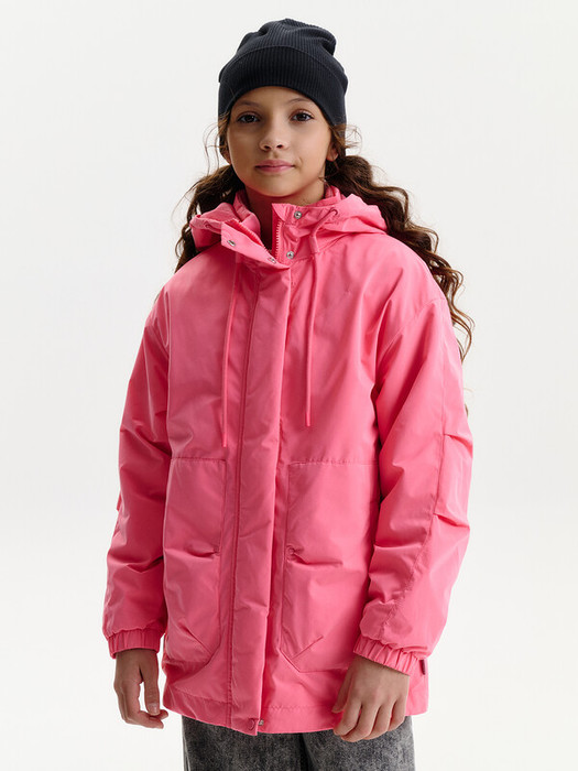 Детская ветровка на девочку выполнена в прямом свободном силуэте, а спущенная линия плеча формирует мягкую, современную посадку, которая хорошо смотрится на фигурах разного типа. Такой крой не сковывает движения и подходит для активных детей. Длинный рукав по низу фиксируется манжетой из основной ткани с эластичной резиной внутри, обеспечивая аккуратное прилегание и защиту от ветра.