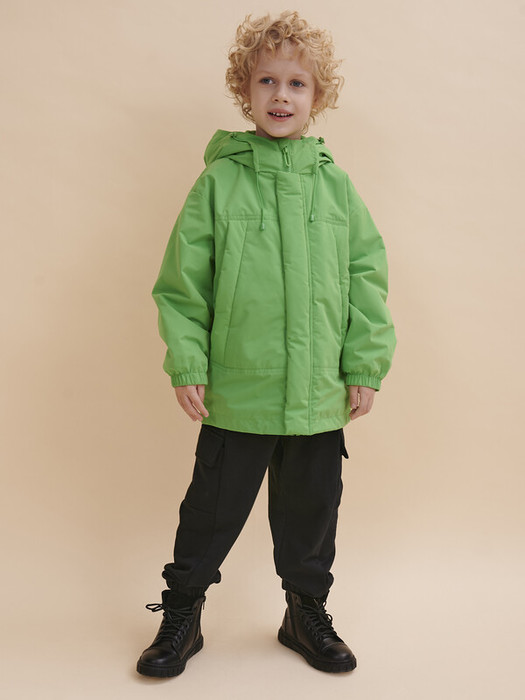 Куртка детская - ветровка для мальчика с длиной до середины бедра с практичным и ловким кроем, понятной формой и силуэтом. Застегивается на молнию и дополнительно на ветрозащитную планку с синтепоном для дополнительного тепла. Слегка спущенное плечо и углубленная пройма, мягкая линия плеча для удобства в носке.Можно вниз одеть объемное худи. Рукав объемный вверху, понизу собран на широкую резинку. Спереди - прорезные карманы на молнии. Вход в карман закрыт декоративными, наклонными, широкими планками. Капюшон с регулировкой на эластичном шнуре с фиксаторами. Сзади капюшон оформлен текстильной застежкой велькро с фиксирующим элементом - дополнительная регулировка объема и декоративный элемент. Внутренний воротник из флиса - тепло и комфортно. Объем низа изделия регулируется эластичным шнуром с пластиковыми фиксаторами.