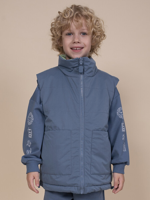 Жилет для мальчика – двусторонняя стеганая модель на синтепоне с мембраной и отталкивающим влагу покрытием. Незаменимый демисезонный вариант на весну и осень с температурным режимом +5 °C. Верхняя одежда для детей отлично защищает от ветра и осадков, позволяя активно двигаться, заниматься спортом и весело играть как в городе, так и на природе.