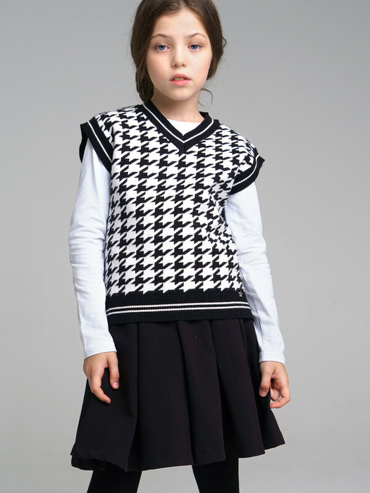 Классический школьный жилет для девочки подростка. Жилет прямого силуэта выполнен из вязаного трикотажа с высоким содержанием вискозы, что обеспечивает максимальный комфорт для школьницы во время занятий. Жилетка в школу выглядит стильно, благодаря трендовому рисунку "гусиная лапка". Рубашка, футболка или поло + жилет для школьницы составит красивый элегантный комплект для школы.