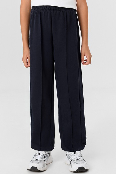 Брюки для девочек. Посадка на талии. Пояс цельнокроеный , внутрь застрочена эластичная тесьма 40RV. Боковые швы перенесены на перед. Низ изделия обработан швом в подгибку, внутрь застрочена эластичная тесьма.