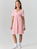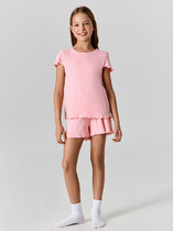 Комплект хлопковой пижамы из футболки и брюк. Футболка свободного кроя дополнена эластичной горловиной и стильным принтом. Брюки среднего объема, эластичный пояс обеспечит комфорт и идеальную посадку. По низу брюк эластичные манжеты.