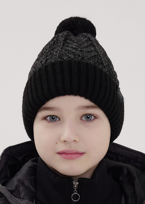 Совместные покупки Тюмень Детские аксессуары Шапки — 13.01 Clever Шапка детская для мальчика CLE 454456ап флис чёрный/меланж т.серый