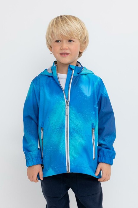 Ветровка для мальчика из мембранной ткани с дополнительной тефлоновой обработкой. Верхняя мембранная ткань 1000/1000 с тефлоновым покрытием отталкивает воду и грязь и обладает «дышащими» свойствами. Подкладка выполнена из 100% полиэстера. У изделия предусмотрена защита подбородка. Несъемный капюшон регулируется с помощью эластичного шнура со стопперами. Низ рукавов имеет эластичную резинку для лучшего прилегания. Во всех изделиях верхнего ассортимента для безопасности ребенка предусмотрены светоотражающие элементы
