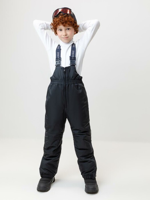 Зимний детский полукомбинезон с утеплителем 120 г/м2 из мембранной ткани с дополнительной тефлоновой обработкой, которая предохраняет изделие от загрязнений и отталкивает влагу. Подклад выполнен из мягкого полиэстера Tricot. Благодаря высокой талии и подтяжкам с регулировкой по росту брюки идеально сидят на фигуре. Застёжка на молнии облегчает одевание. Колени с анатомическим кроем усилены дополнительными вставками из основной ткани. Низ регулируется под ширину обуви при помощи кнопки. Силиконовые штрипки и внутренняя противоснежная юбка  защищают обувь от попадания снега и удерживают брюки в закреплённом положении. Во всех изделиях верхнего ассортимента для безопасности ребёнка предусмотрены светоотражающие элементы.