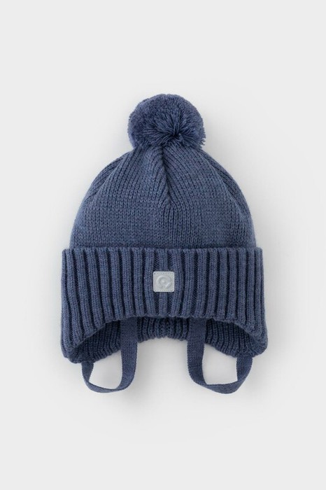 Тёплая зимняя шапка с подкладом из хлопкового трикотажа. Верх выполнен из полушерстяной пряжи. На макушке помпон. Светоотражающая нашивка спереди обеспечивает безопасность в темное время суток.