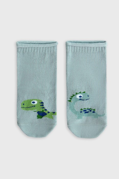 рис.2322 Детский гладкий носок без борта, с рисунком в виде динозавров.