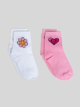 рис.2772 Гладкий детский носок с резинкой средней высоты и объёмным рисунком в виде цветка.