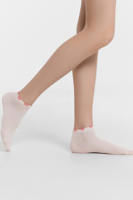 рис.3191 Детские укороченные носки выполненный перекидным переплетением (лапша), с пикотом в виде сердечек на бортике.