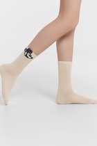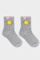 рис.2136 Детский носок с плюшевым следом и рисунком в виде елок и медведей.