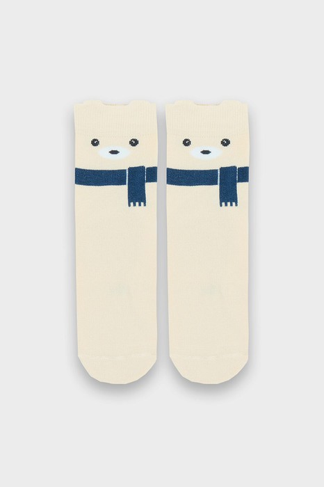 рис.2926 Детский классический носок с плюшевым следом и рисунком в виде мишек.