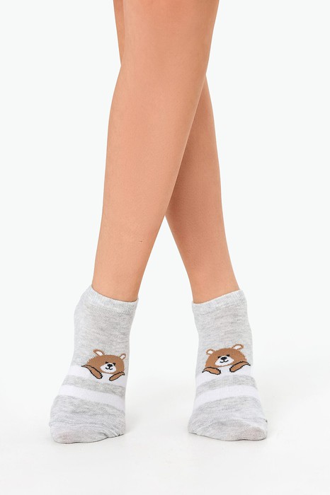 рис.3180 Детский укороченный носок с рисунком в виде полосок и мишки.