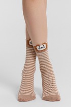 рис.3181 Детский укороченный носок с рисунком в виде двух цветов основы и мишки.