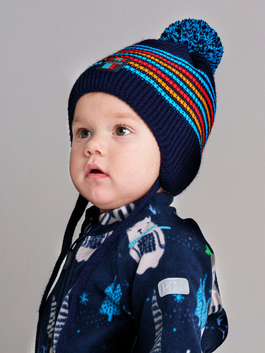 Шапка с завязками из трикотажа плотной вязки. Пряжа из акрила: легкая, теплая, гипоаллергенная. Шапка утеплена синтепоном. Подкладка из мягкого трикотажа с высоким содержанием хлопка 95%.