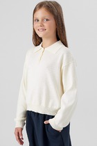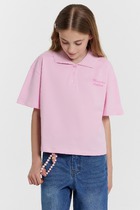 Модельные ососбенности: Поло для девочек свободного силуэта с воротником из довяза. На детали переда обработана планка с 3 пуговицами d=10mm, горловина круглой формы. Плечо спущено, пройма слегка углублена. Рукав втачной, короткий.