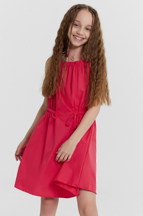 Этот стильный сарафан для девочек — прекрасный выбор для летнего гардероба! Модель на тонких бретелях создает легкий и элегантный образ, идеально подходящий для теплых дней. Эластичная сборка в области груди и талии не только добавляет изящности, но и позволяет регулировать приталенность, обеспечивая комфортную посадку и подчеркивая силуэт. Изделие выполнено из комбинации натурального хлопка и полиэстера. Такое сочетание делает сарафан мягким, приятным к телу и при этом долговечным, устойчивым к износу. Материал легкий и позволяет коже дышать, что особенно важно в жаркую погоду. Сарафан идеально подойдет для прогулок, семейных мероприятий или повседневного ношения. Он прекрасно сочетается с сандалиями, балетками или легкими кедами, добавляя нежности и свежести в каждый образ!