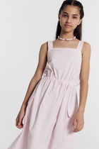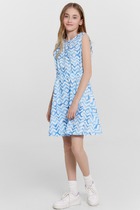 Сарафан А-силуэта, с отрезным воланом по низу. Kруглый вырез горловины, без рукавов. Низ изделия обработан швом в подгибку.
