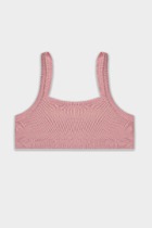 Удобное и функциональное бюстье для девочек. Выполнено из хлопкового трикотажа с небольшим добавлением эластана. Чашки на подкладке, бретели регулируются по длине сзади. Миниатюрный бантик на ластовице делает бюстье максимально милым!