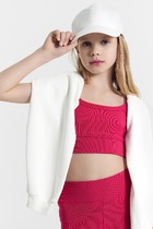 Хлопковое бюстье прилегающего силуэта для девочек. Выполнено из легкой и приятной к телу трикотажной рибаны. Вырез горловины и проймы окантованы эластичной тесьмой. На бретелях есть кольца-регуляторы. По нижнему краю бюстье расположена удобная и стильная жаккардовая тесьма. Идеально!