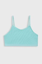 Топ прилегающего силуэта, без каркаса. Чашки без выточек с подкладкой из кулирного полотна SJ-6 (SJ-009.01.170), 95% хлопок; 5% эластан, 180 см, 170 гр/м?. По верхнему краю чашки с изнаночной стороны в подгибке эластичная тесьмавнутри (жилка тканая WT4-6) ширина -6 мм. Верхний срез спинки и проймы окантован бейками из основного полотная с эластичной тесьмой внутри (жилка тканая WT4-10) ширина 10 мм. Бретели SWE3-10, ширина 10 мм. На бретелях: кольца и регуляторы. Низ топа окантован бейкой из основным полотном с эластичной тесьмой внутри (внутренняя резина 25RV) ширина -25мм.