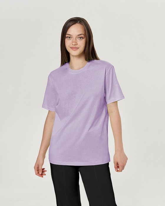 Boyfriend крой, укрепление по горловине спинки, круглый вырез. Горловина рибана. Отстрочка по горловине переда
