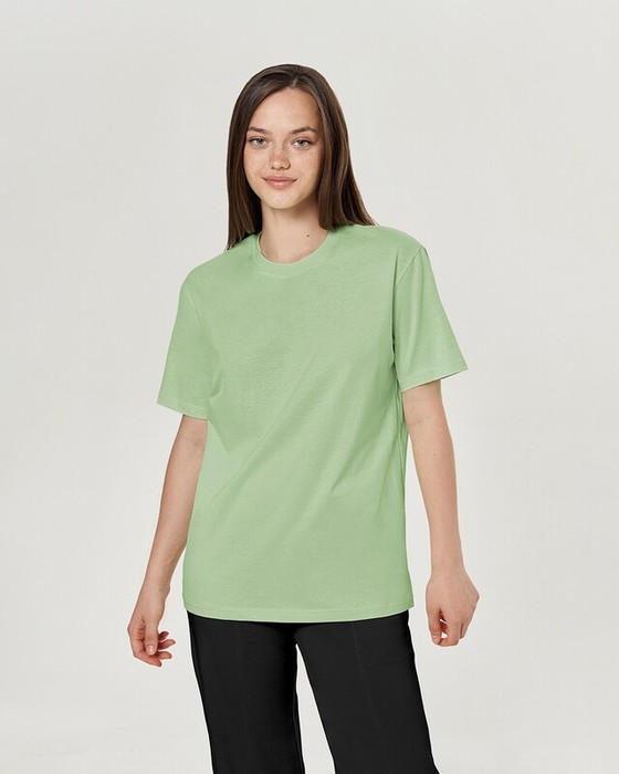Boyfriend крой, укрепление по горловине спинки, круглый вырез. Горловина рибана. Отстрочка по горловине переда