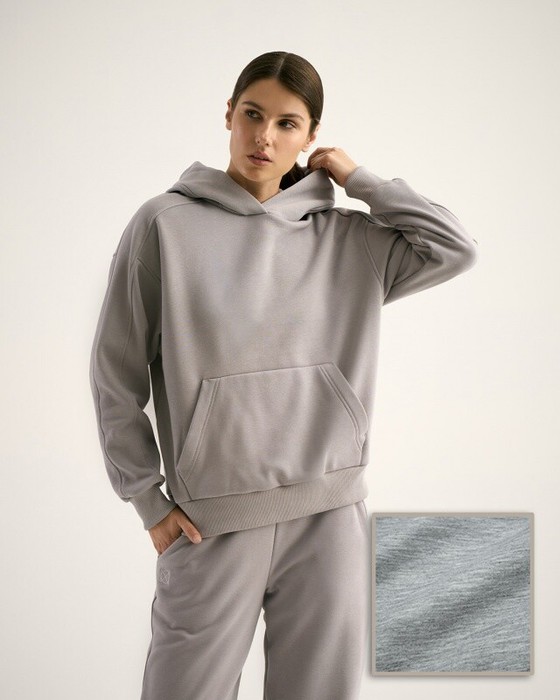 Худи свободного кроя с капюшоном, спущенное плечо, карман кенгуру.