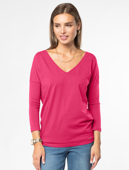 21.04 Vilatte Джемпер из премиального хлопка с эластаном D49.957 вива_маджента