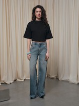 Удлиненные прямые джинсы выполнены из гладкого эластичного хлопка. Высокая посадка грамотно подчеркивает силуэт. Разрезы по бокам добавляют модели изюминку и помогут составить трендовый образ вместе с рубашкой over-size, укороченной футболкой и жакетом.