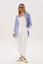 Брюки, расклешенные от колена из футера 2-ух нитки с эластаном. Брюки на высокой посадке с притачным поясом, с прилеганием в верхней части изделия.