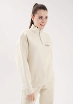 Джемпер спортивный прямого силуэта из трикотажного полотна флис. По горловине стойка с молнией. Спереди рельефы. Длинный рукав со спущенной линией плеча. По низу рукава и низа изделия окантовка. Спереди вышивка.