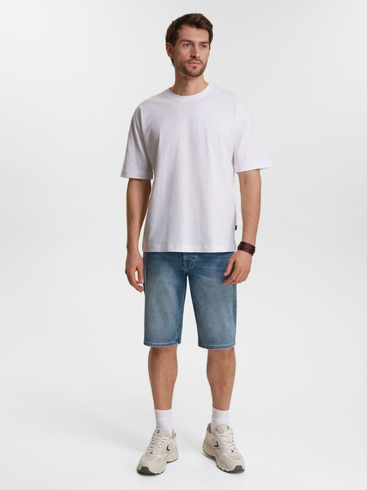 Шорты изготовлены из приятного на ощупь денима классического цвета. Модель отлично подходит для комбинации с однотонными вещами, что поможет создавать практичные и лёгкие образы на каждый день.