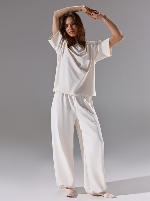 Брюки джоггеры (из 192022) свободного силуэта, по верху и низу присборены на складки. Пояс цельнокроеный с эластичной тесьмой внутри (внутр. 15 мм 15RV). По низу застрочена  эл. тесьма 15RV.
