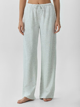 Брюки с посадкой на талии свободного силуэта. Пояс цельнокроеный с резиной внутри 20RV. По центру пояса пробиты петли, протянут шнур кругловязанный 5 мм 5KXWC-1. В боковых швах карманы. Низ изделия застрочен швом в подгибку.