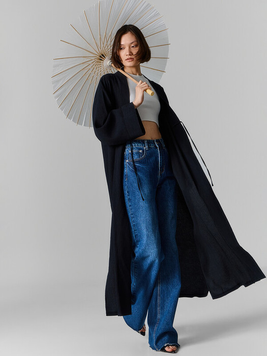 Кардиган свободного силуэта, прямой. Рукава длинные, втачные, с манжетами. Горловина обработана отрезной планкой. Спереди завязка из основного полотна. По спинке центральный шов. По бокам разрезы. Низ вподгибку.